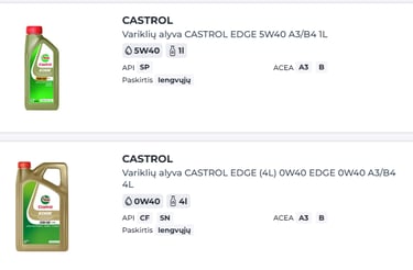 Benzinui: 5W40 ir 0W40 / Dyzeliui: 5W40